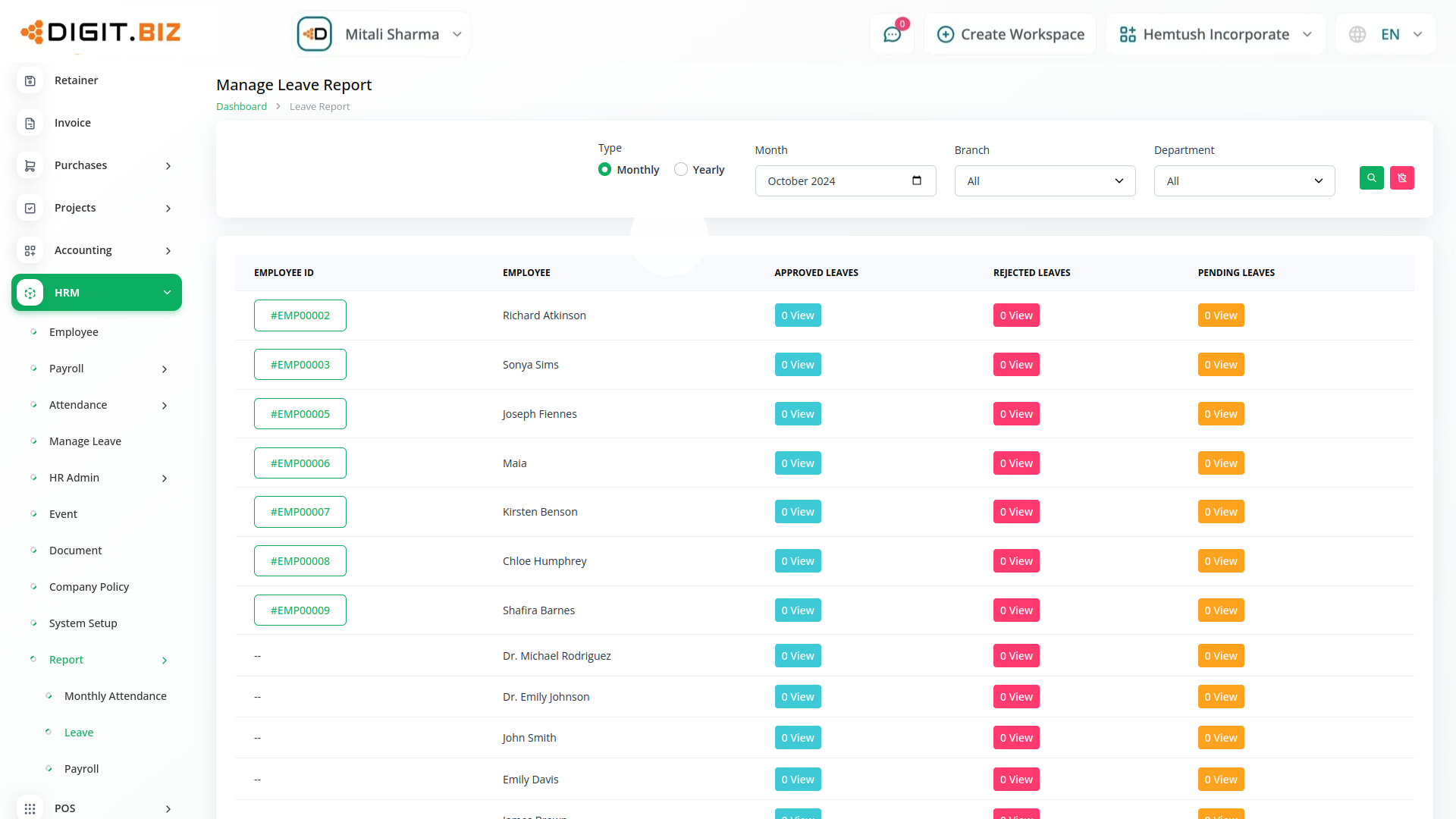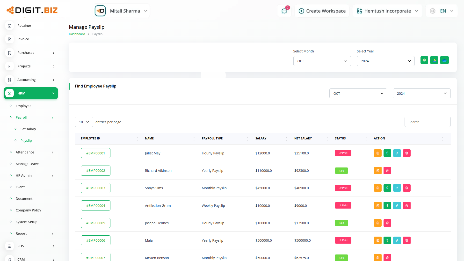With DIGIT HRM, you can manage key employee matters, recruit new candidates, boost employee productivity, and pay your employees for their hard work - Without stress, all from one place. Whether youre a consultant, small business owner, or large corporation - the system is designed for everyone.